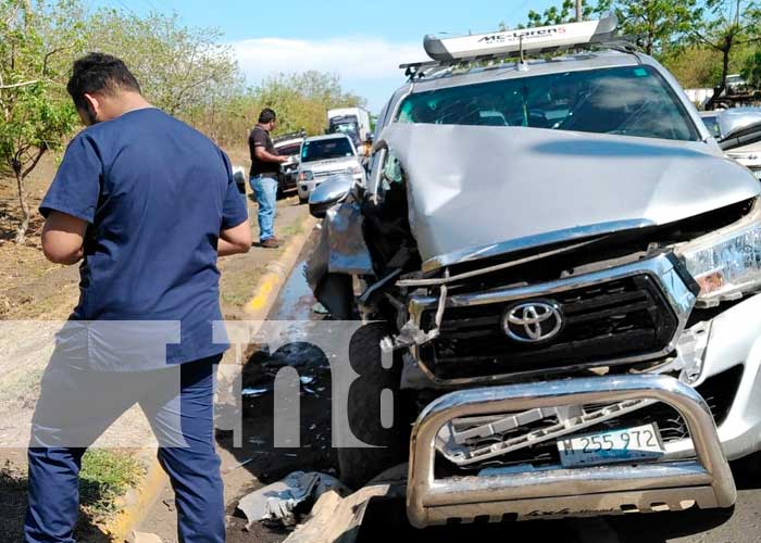 Un fuerte accidente de tránsito se registró en el km8 de la Carretera Nueva a León este lunes. Se presume que el conductor de una camioneta se encontraba estacionado a la orilla de la vía, cuando fue brutalmente impactado por otro vehículo en este sector, jurisdicción Managua.