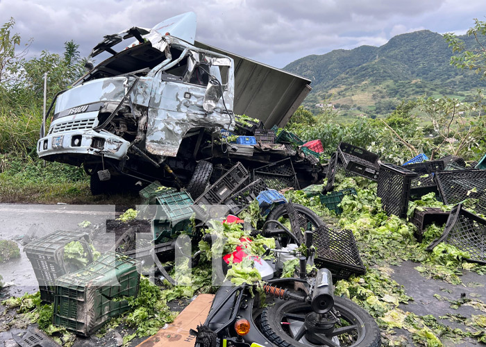 Definitivamente, el impacto fue devastador; el camión quedó con toda su parte izquierda destruida y gran parte de la carga de lechugas se esparció por la carretera, por ende una significativa pérdida económica para el conductor del camión.