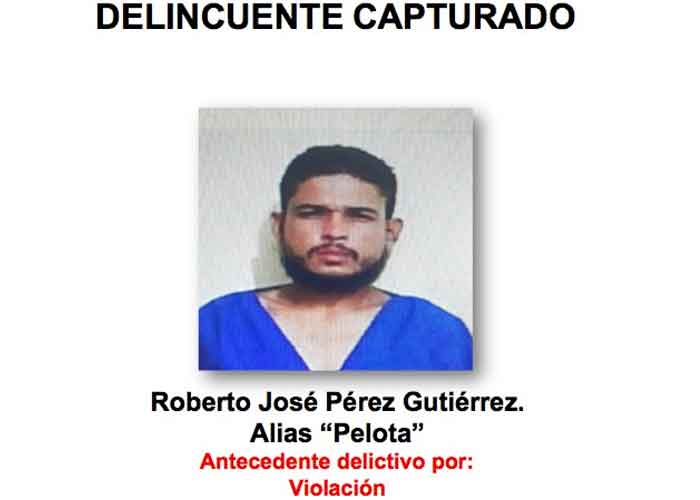 Investigadores policiales capturaron al delincuente Roberto José Pérez Gutiérrez, quien presenta antecedentes delictivos por violación.