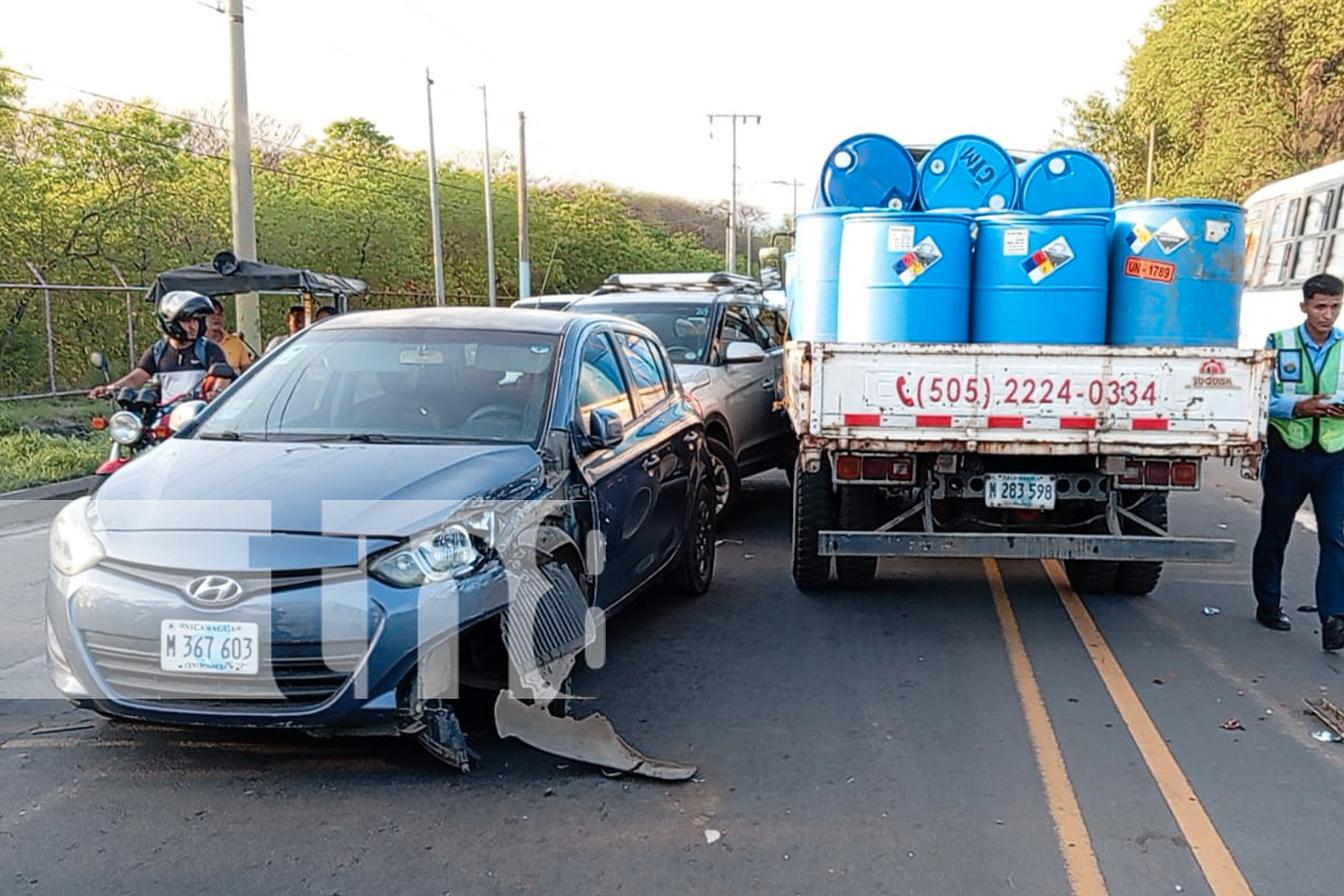 Un múltiple accidente se produjo hoy en la subida de las Piedrecitas, Managua, debido a fallas en el sistema de frenos de un camión cargado de barriles plásticos. El incidente ocurrió cuando su conductor perdió el control sobre el timón, colisionando contra varios vehículos que venían en sentido contrario. Aunque afortunadamente no se reportaron lesionados; los daños materiales son cuantiosos.