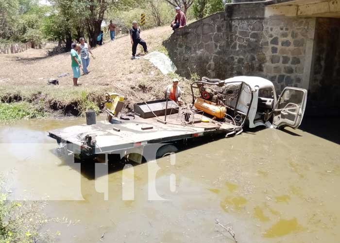 Presuntamente, el conductor de un camión placa M 292104, se durmió y perdió el control del vehículo hasta precipitarse de un puente, de aproximadamente 7 metros de altura.
