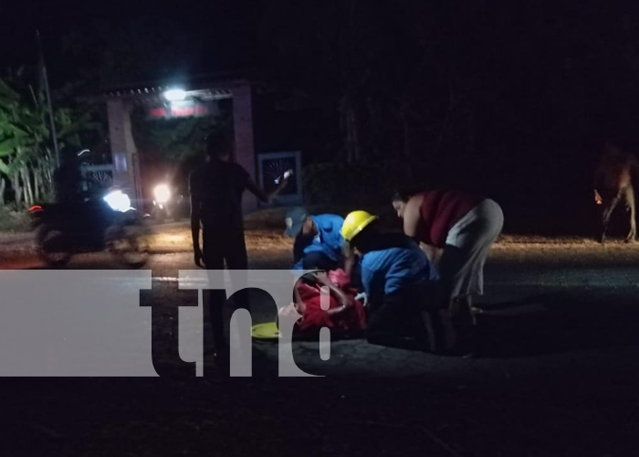 Motociclista y acompañante terminan lesionados luego de chocar con un “chancho” accidente ocurrido en la comunidad La Sabana, en la Isla de Ometepe.