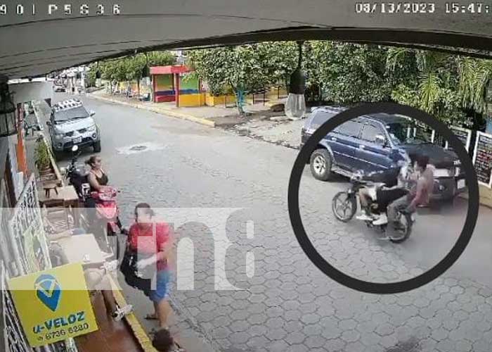 En cámaras de seguridad de un establecimiento ubicado en el municipio de Moyogalpa, de Ometepe quedó grabado el momento exacto en el que tres chavalos sufren un accidente de tránsito, cuando iban como locos a bordo de una motocicleta.