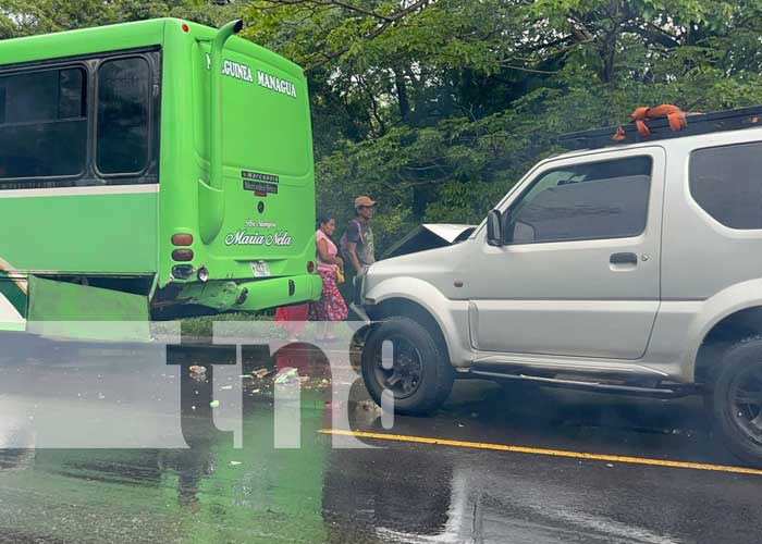 Fuertes pérdidas materiales y el susto de sus vidas fue el resultado de un brutal choque entre un vehículo Jeep y un autobús en Juigalpa, Chontales.