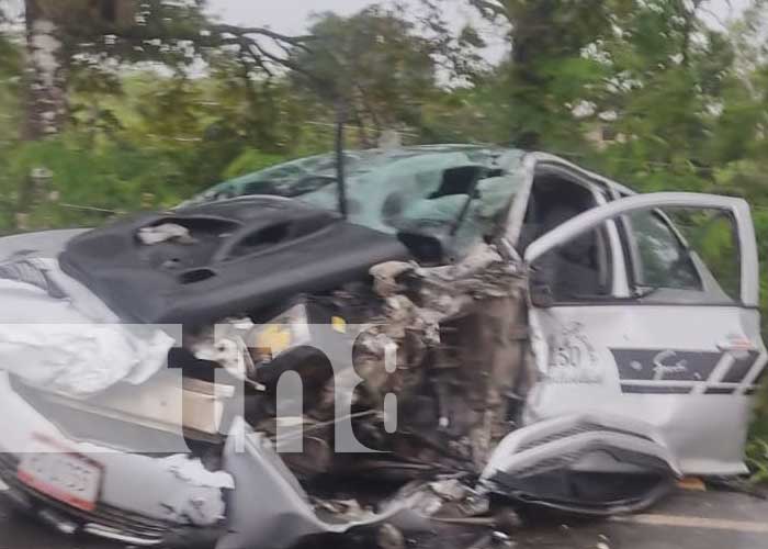 El accidente de tránsito se dio cuando el vehículo taxi color gris, Placas RS 1755, con número de concesión 150; y conducido por Felipe Pedro Oporta Chavarria, colisionó de frente con la camioneta Toyota Hilux, color gris; placas RS 5780 conducida por Ley Glen Chow Ortíz en El Rama.