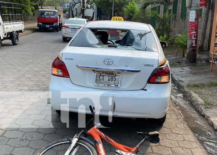 “La canteada (el problema) fue que estacionado me pasó. Iba a montar a una señora vende pescado cuando escucho el frenazo, y se estrelló el muchacho detrás del taxi«; expresó Israel, taxista de Juigalpa.