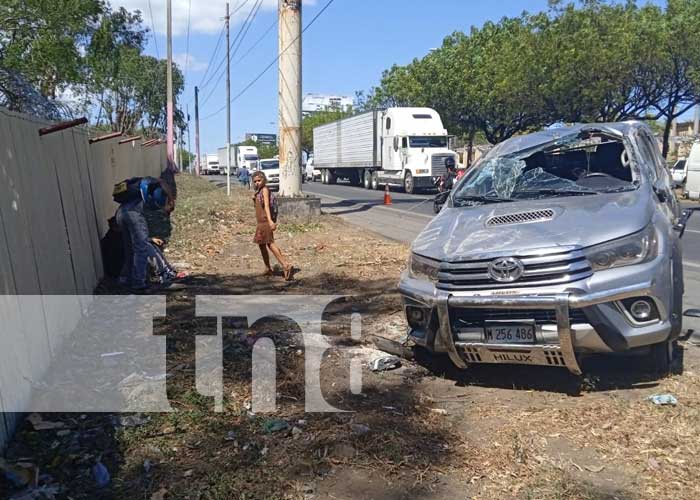 «Venía de arriba hacia abajo. Se le explotó una llanta, perdió el control y se volcó. Él venía solo y gracias a Dios solo son golpes leves»; dijo Marcos Rojas, testigo del accidente en Managua.