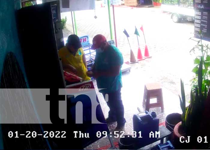 La astucia de un hombre que se hizo pasar por cliente quedó captado en una cámara de seguridad ubicado en un establecimiento de ventas de baterías en Monseñor Lezcano, en Managua.