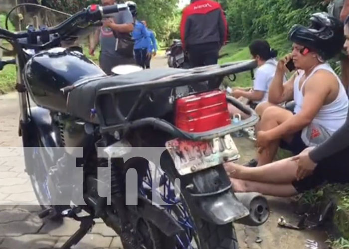 Un accidente de tránsito entre dos motocicletas que impactaron de frente dejó como saldo tres personas lesionadas y daños materiales. El incidente tuvo lugar en el municipio Jinotepe, Carazo; en el barrio El Dulce Nombre.