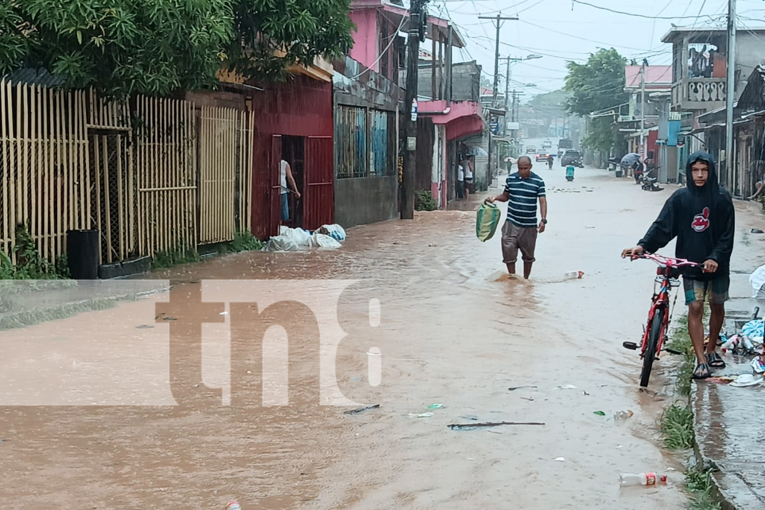 En Bluefields, la calle principal del barrio Fátima amaneció cerrada por la Policía Nacional luego que se llenara de agua, al punto de llegar al puente que une este barrio con el barrio Santa Rosa. Un 40 % de la calle Colón, como también es conocida, sufrió estragos.