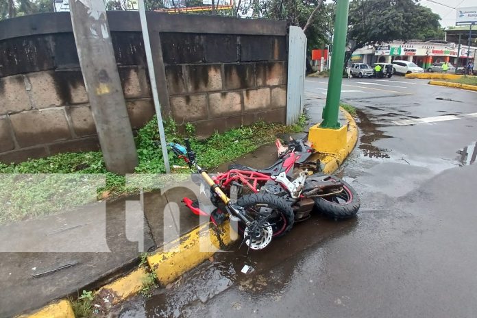 Los semáforos del kilómetro 9.9 de la carretera a Masaya fueron el escenario de un aparatoso accidente de tránsito, donde un motociclista resultó gravemente lesionado.