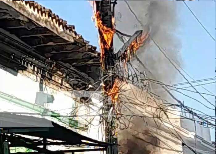 El ritmo habitual del mercado municipal de Granada se vio afectado la mañana de este domingo 25 de febrero, cuando un cortocircuito originado en un poste de tendido eléctrico amenazaba con arrasar los tramos ubicados en la esquina de las vigoroneras, a media cuadra al sur.