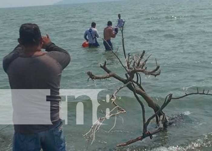 Miembros de Cruz Blanca recuperan el cuerpo del joven de iniciales V. M. S. V., de 17 años de edad, quien perdió la vida por sumersión, cayendo de la lancha donde pescaba la tarde de ayer miércoles 3 de abril en el Lago Xolotlán.