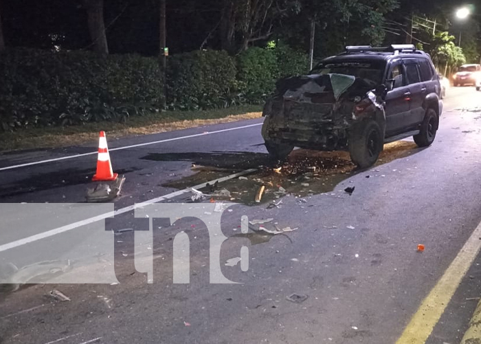 Los agentes de tránsito se presentan al lugar del accidente vial que deja pérdidas cuantiosas en ambas camionetas. Recomiendan, sobre todo a conductores de vehículos, respetar los límites de velocidad. Hay que señalar que esta vía a Masaya es de bastante tráfico vehicular. Asimismo, eviten el consumo de licor y respeten a los demás medios de transporte sobre la vía.