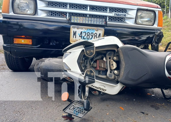 «Yo vengo detrás de la camioneta, el joven venía rápido y esa curva, más con esa moto que es de alto cilindraje, es difícil de controlar y se estrelló de frente, quedó debajo prácticamente. Está vivo de milagro«; expresó Mario López, testigo del accidente en esa zona de Managua.