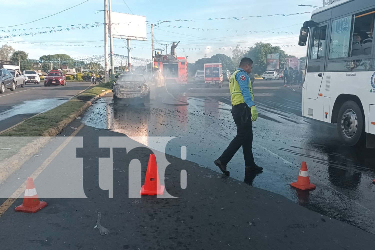 Foto: El rápido actuar de bomberos evita una catástrofe mayor en la rotonda Cristo Rey/TN8