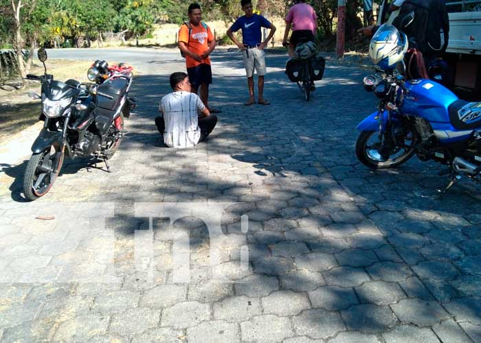Afortunadamente solo daños materiales fue el saldo de un fuerte choque entre dos motociclistas en Ometepe, quienes impactaron casi de frente. Sin duda llevar puesto el casco de protección fue vital, para que este percance vial no pasara a mayores consecuencias.