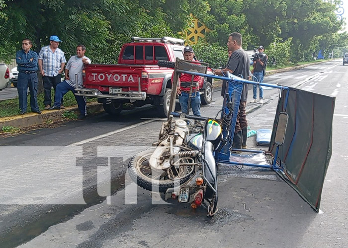 Una embarazada resultó con una profunda herida en la pierna después de que la caponera en la que viajaba se volcara. El accidente ocurrió cerca de la entrada del Carnic, Carretera Norte, Managua; en una zona que ha sido escenario de varios percances viales.