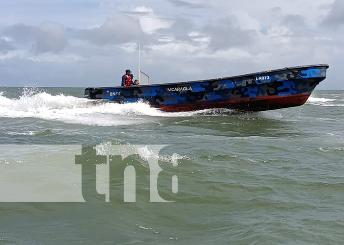 Efectivos del Distrito Naval Caribe de la Fuerza Naval del Ejército de Nicaragua realizan la búsqueda de una pequeña embarcación que lleva cuatro días desaparecida; en la que viajaban tres personas.