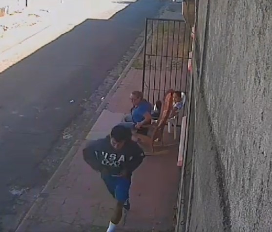 El hecho quedó registrado en las cámaras de seguridad de la casa vecina, casa esquinera; desde donde se puede apreciar en dos ángulos cómo el asaltante, deja estacionada la bicicleta, lista para la huida, y se dispone a espiar el momento de mayor descuido de su víctima para caerle.