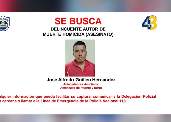 «El autor del crimen es el sujeto José Alfredo Guillen Hernández de 34 años, quien está prófugo de la justicia”; indicó la autoridad policial de Matagalpa.