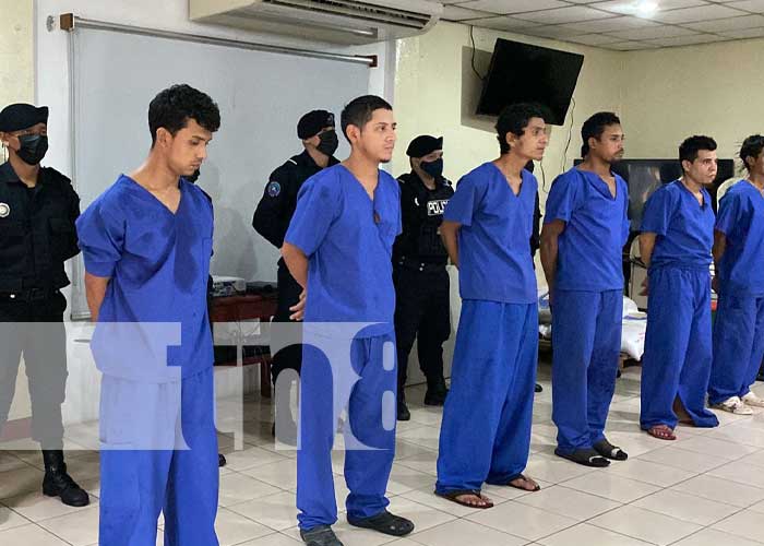 El comisionado Douglas Juárez; jefe de la delegación policial en Chinandega, detalló los delitos de los que son acusados cada uno de los detenidos; así mismo dio a conocer las evidencias que se ocuparon.
