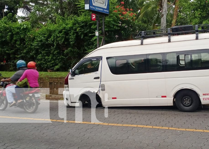 Un autobús interlocal de la ruta Managua-La Concepción sufrió este martes un fuerte accidente de tránsito que por poco termina en tragedia, luego de que explotara una de sus llantas delanteras, específicamente la del lado izquierdo; mientras se dirigía a la capital.