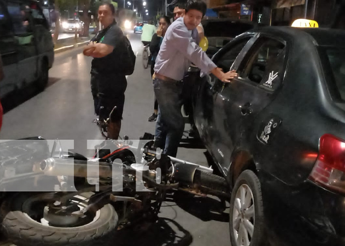 Con lesiones en su humanidad, resultó Allan Bismarck Escobar, de 46 años; al estrellarse contra una unidad de taxi que se encontraba en reparación. El hecho ocurrió en el costado este de la parada de buses Granada-Huembes, en La Gran Sultana.