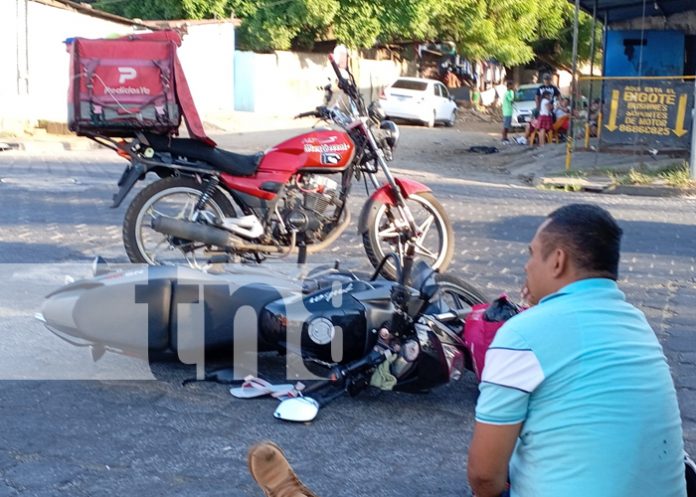 La aparente falta de cortesía ocasionó que dos motociclistas fueran protagonistas de un accidente de tránsito en las cercanías de los semáforos de la Racachaca, barrio Altagracia, Distrito III de Managua.