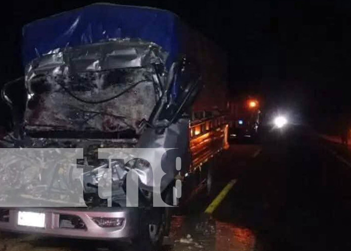 Atrapados entre el metal retorcido de la cabina del camión en que se transportaban, fallecieron el conductor José Gregorio Granja, de 45 años, y su acompañante Bayardo José Fernández Treminio, de 52 años de edad; tras una múltiple colisión entre camiones en el kilómetro 30 de la carretera El Timal a Malacatoya.