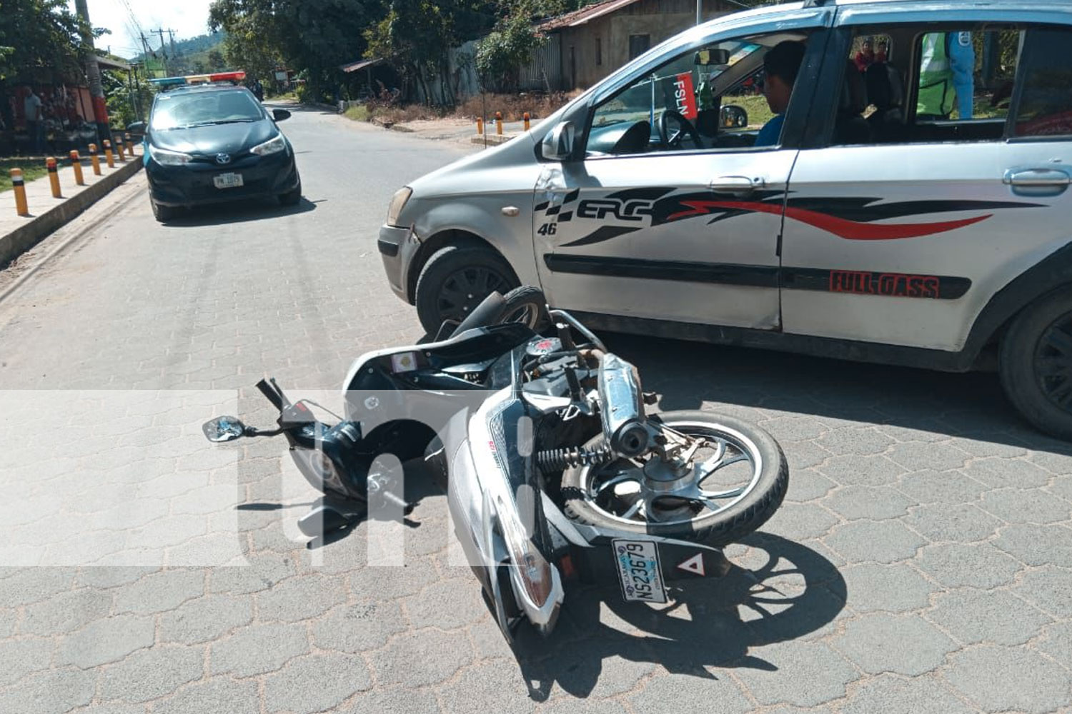 Una colisión entre vehículos se originó en el sector #5 en el municipio de Jalapa. En este percance vial se vieron involucrados una motocicleta y una unidad de taxi; al parecer, el vehículo pesado realizó un giro en U, provocando la colisión.