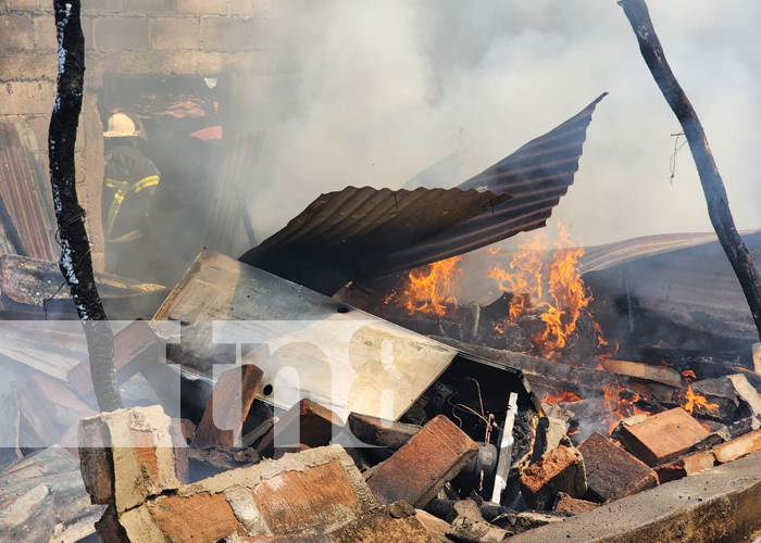 Fuerte incendio reduce a cenizas una vivienda en la ciudad de León, afectando a 5 habitantes de una familia; que corrieron con suerte al salir de la vivienda antes que está tomara fuego.