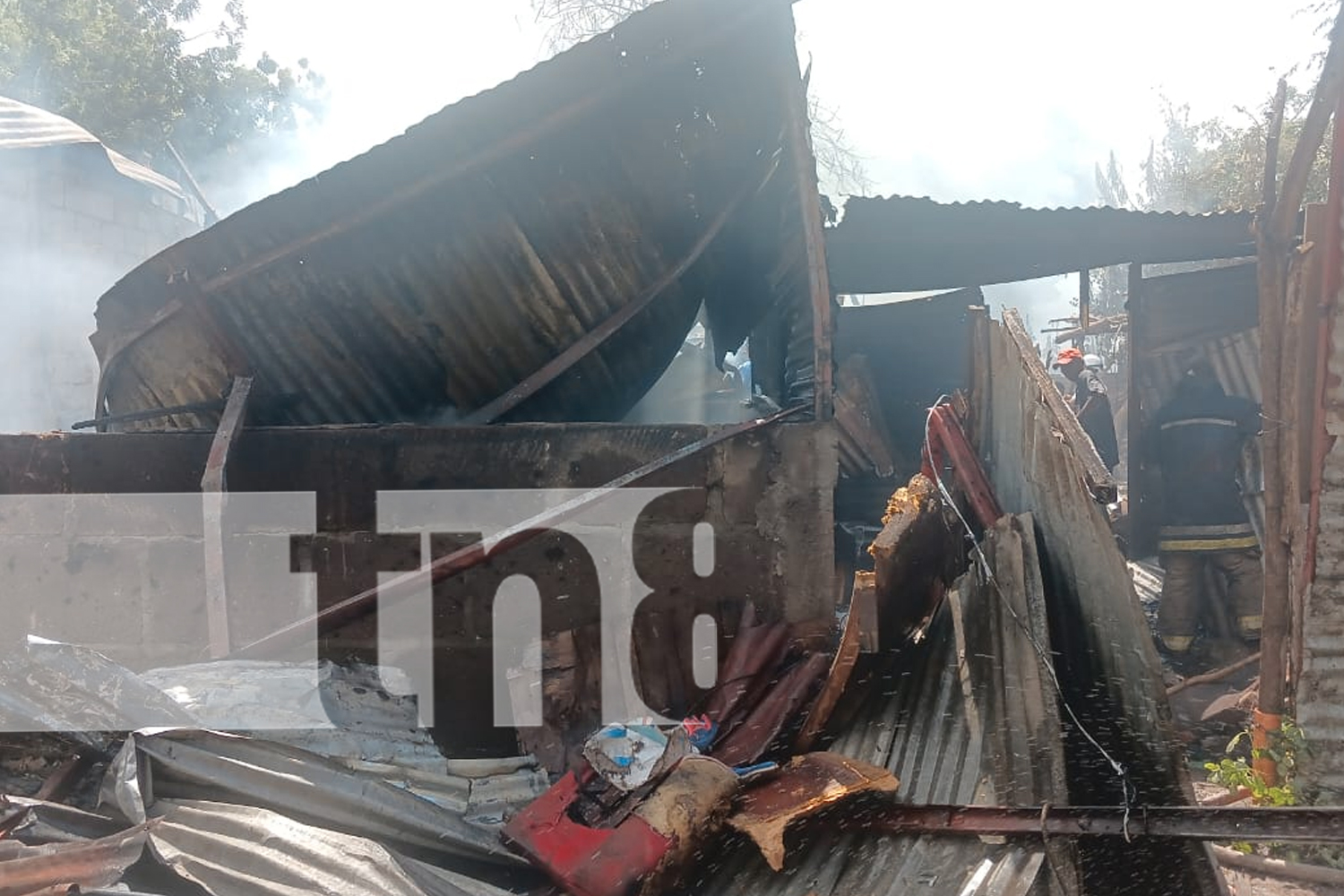El fuego alcanzó rápidamente dos viviendas en el barrio Nueva Vida, Ciudad Sandino, de la terminal de la ruta 113, cuatro cuadras abajo, reduciendo los enseres a escombros.