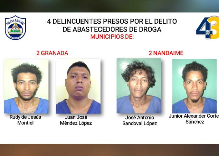 Se capturó a 10 supuestos delincuentes, acusados de cometer delitos de peligrosidad, entre los que destaca, la captura de 4 supuestos abastecedores de droga, en los municipios de Granada y Nandaime. Se ocuparon 32.4 gramos de cocaína y 27.2 gramos de marihuana.