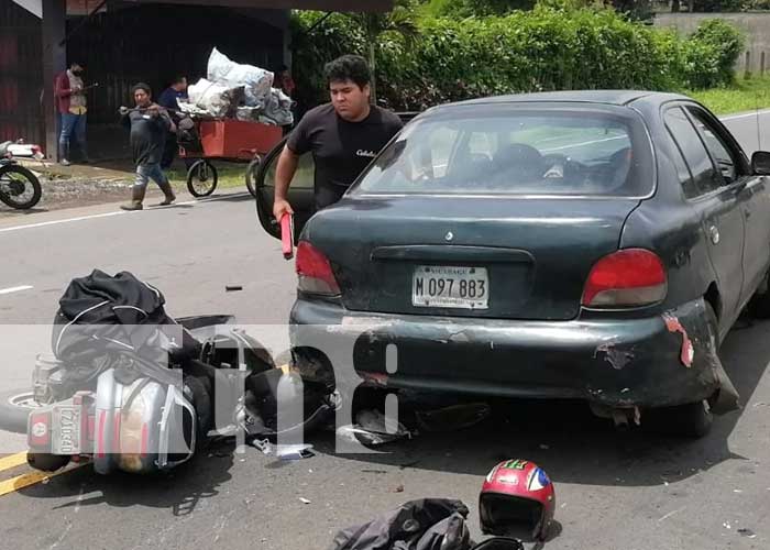 Un buen susto se llevó el joven Wilfredo Gutiérrez de 29 años, tras colisionar su motocicleta estilo scooter con la parte trasera de un carrito verde en Diriamba. Según testigos el conductor del carro pretendía girar para entrar a un barrio de esta localidad.