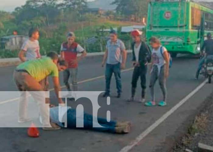 Hombre sobrevive milagrosamente al caer de un autobús en movimiento, con las llantas traseras pasando sobre su cabeza; en El Camastro, Santo Domingo, Chontales.