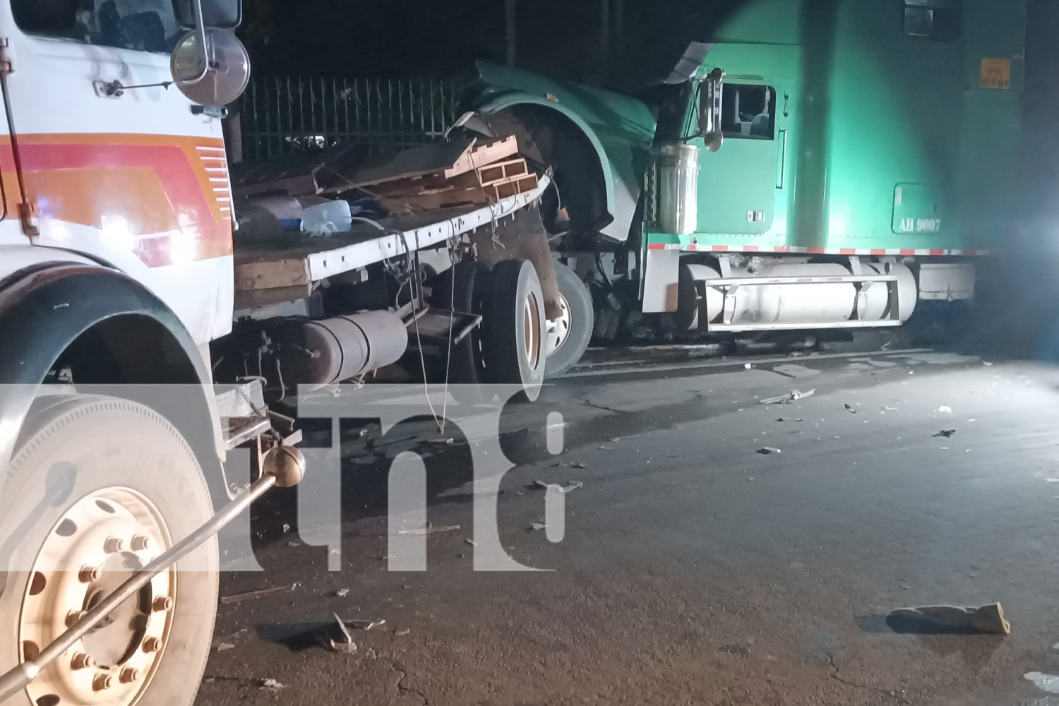 Un aparatoso accidente de tránsito ocurrió esta madrugada, frente a la Aduana en Carretera Norte, Managua; a pesar de lo impactante del choque, solo se reportaron daños materiales. Por suerte, no hubo personas lesionadas, aunque los involucrados vivieron el gran susto de sus vidas.