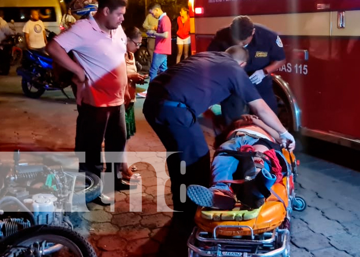 Motociclista y acompañante resultaron lesionados en accidente de tránsito; ocurrido en los semáforos del Colegio Cristo Rey, estos impactaron contra un carro que circulaba en dirección contraria; y que pretendía ingresar al barrio Jorge Dimitrov. Ambos lesionados quedaron tirados sobre la vía a unos 20 metros de donde se dio el impacto; llevándose la peor parte el conductor de la motocicleta.