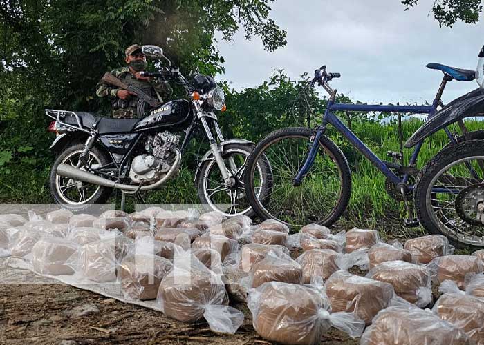 El Ejército de Nicaragua en un operativo de las tropas de frontera incautó a las 12:06 AM de este lunes 7 de agosto en el sector de Namaslí, municipio Jalapa, frontera con Honduras; 100 paquetes compactos de marihuana.