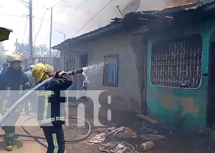 Un voraz incendio en el barrio Jorge Dimitrov, Managua; amenazó con devorar tres viviendas al mediodía de este jueves.