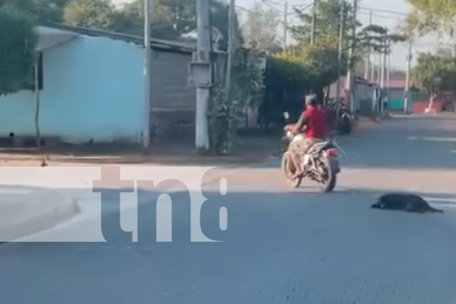 Según la denuncia, el suceso ocurrió en el municipio de Tipitapa. En el video, se observa cómo el hombre, sin ningún tipo de respeto o consideración, arrastra al animal por el suelo mientras una persona que viaja en la parte trasera de la moto graba el acto.