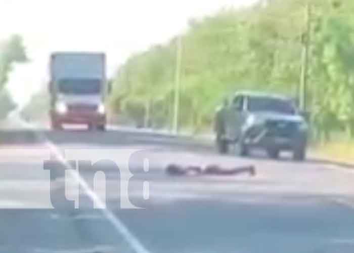 Con signos de vida pero gravemente lesionado fue trasladado un hombre después que se abalanzó violentamente contra una camioneta; cuyo conductor aparentemente tenía como destino la capital.