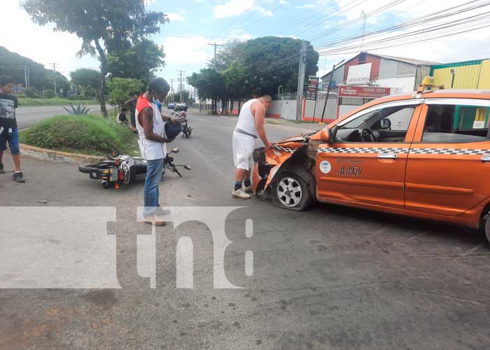 Daniel Calderón quien es el conductor de la motocicleta, se dirigían de este a oeste en el carril izquierdo, mientras que el taxista identificado como José López Jarquín, en el carril derecho al momento de la colision.