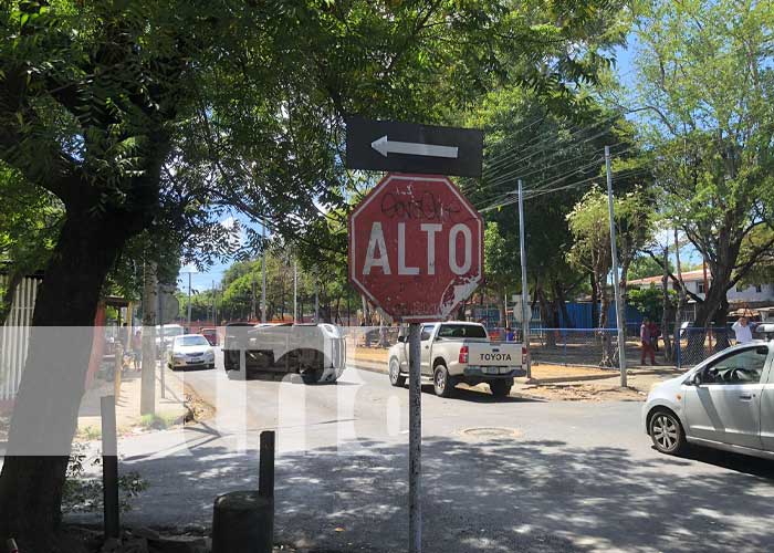 “Yo vengo de abajo hacia arriba y él viene de norte a sur y se tiró el Alto. Yo no sé cómo no lo vio si ahí está la señal clarita, ahí salió aturdido y pidiendo disculpas y me dice ¡me la tiré, me volé el alto!”; aseguró el conductor afectado en este punto de Managua.