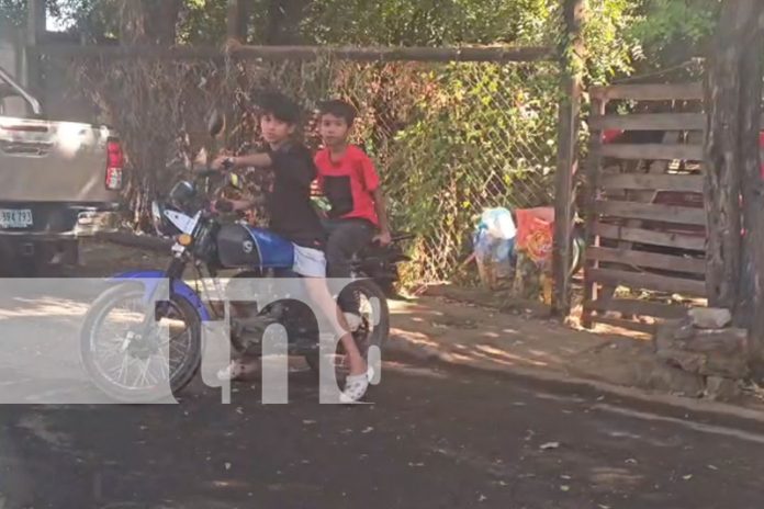 En un video grabado por el conductor de un vehículo en una calle del barrio Arnoldo Alemán, distrito VII de Managua, se observa cómo dos menores de edad; sin casco, hacen uso de una motocicleta; este video se ha tornado viral en las redes sociales al ver la magnitud de tan tremenda imprudencia.
