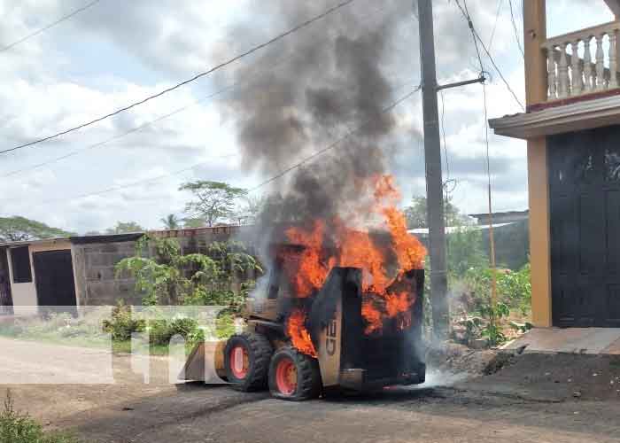 Minicargador toma fuego por desperfectos en sistema eléctrico en Nandaime