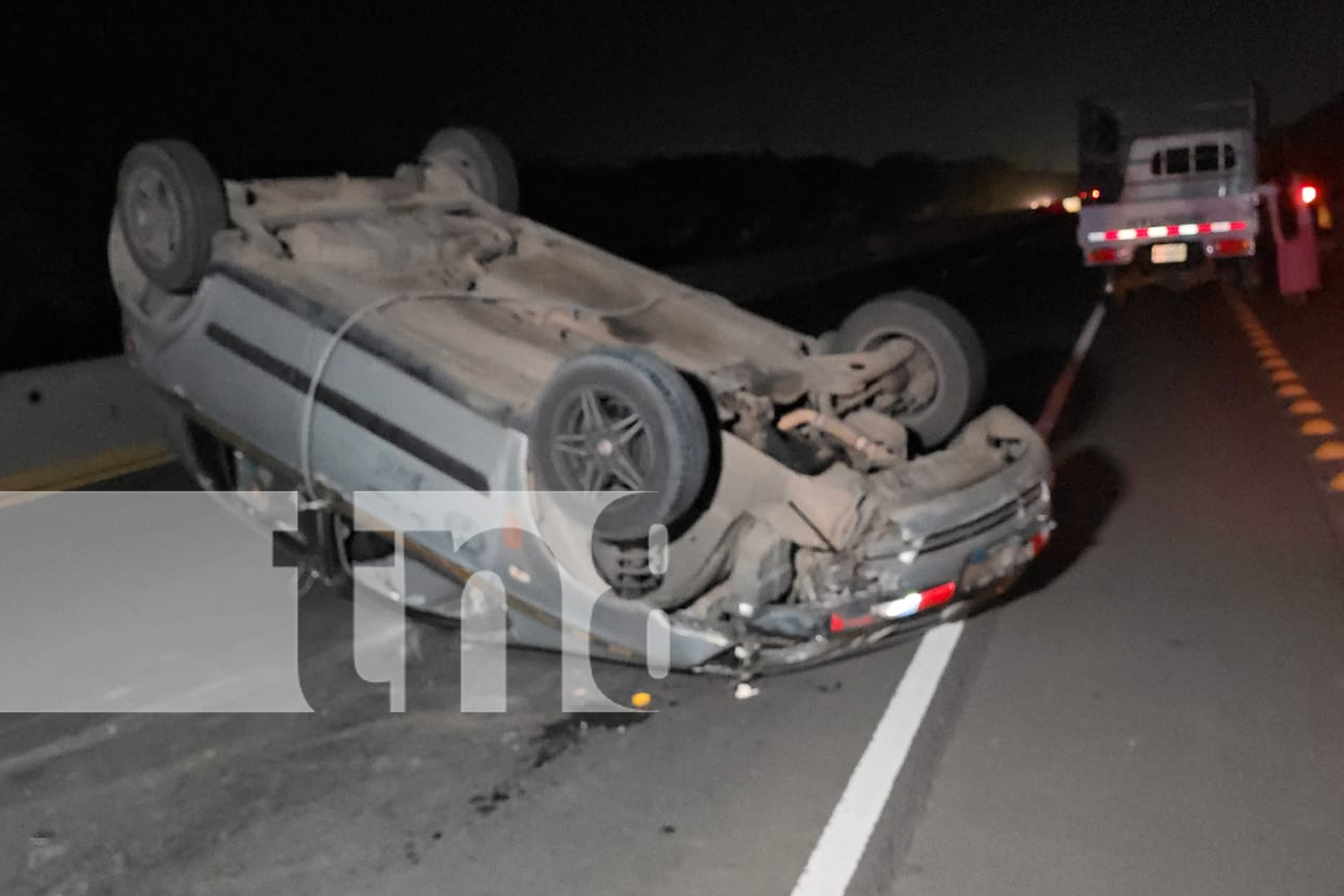 Un accidente de tránsito se registró en la noche de este sábado, donde un taxi con placa de Managua 04-085 se volcó, en circunstancias aún no claras.