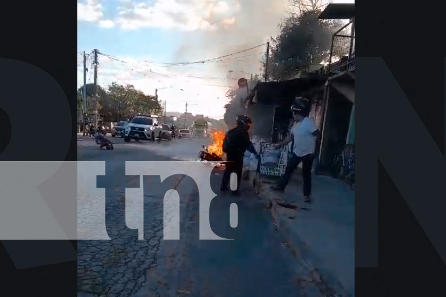 Las fuertes temperaturas, el recalentamiento del vehículo o el mal estado del mismo, podrían ser las causas de un incidente que se registró en la ciudad de Matagalpa, donde se vio involucrado el conductor de una moto que de forma repentina tomó fuego.
