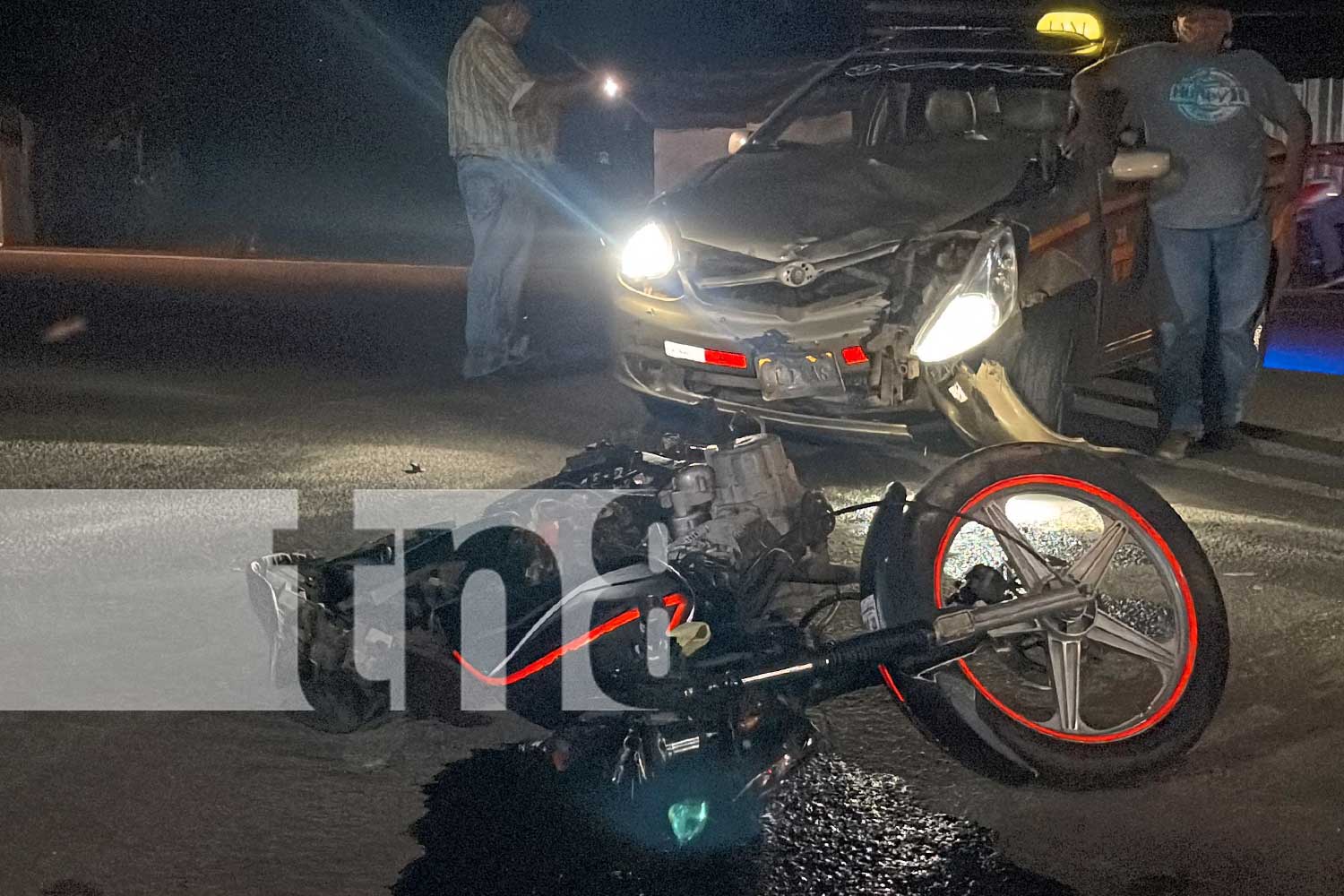 El motociclista identificado como Cristhian Martínez resultó con lesiones graves en su pierna izquierda tras la colisión de su unidad de dos ruedas contra un taxi, placa CT 146, conducido por Lesther Alberto Flores Bonilla.