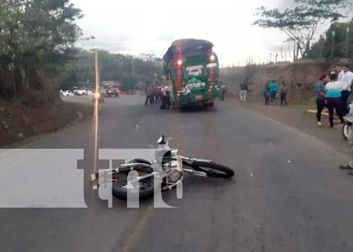 La víctima circulaba en una motocicleta por la curva que está frente a los ranchos en el sector de Las Lomas, impactando en la llanta trasera izquierda de la unidad de transporte conocido como «El Sucio«, placa JI 283; cuando se dirigía de Pantasma hacia la ciudad de Jinotega.